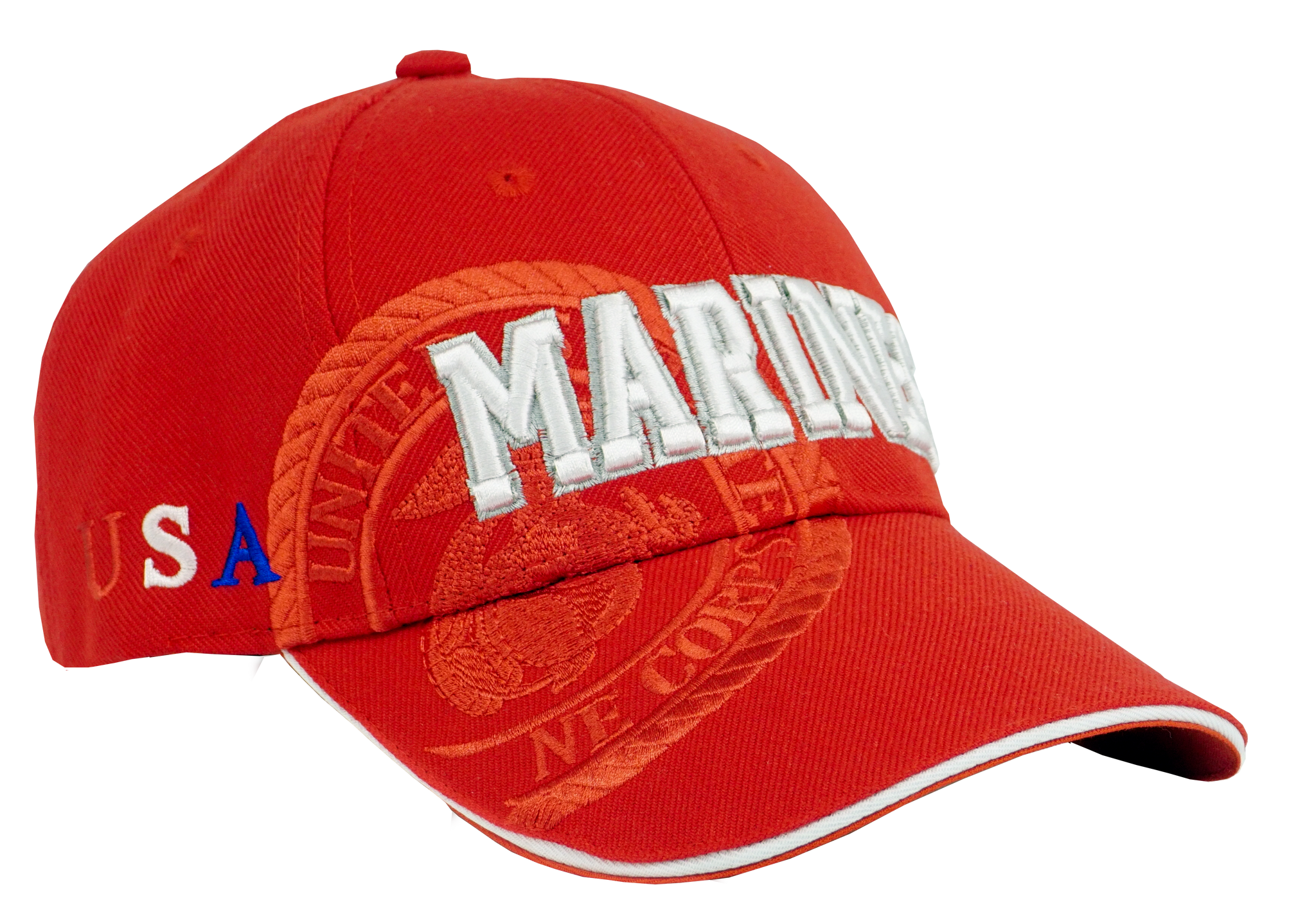 US Marines Embossed and Embroidered Baseball Cap Red