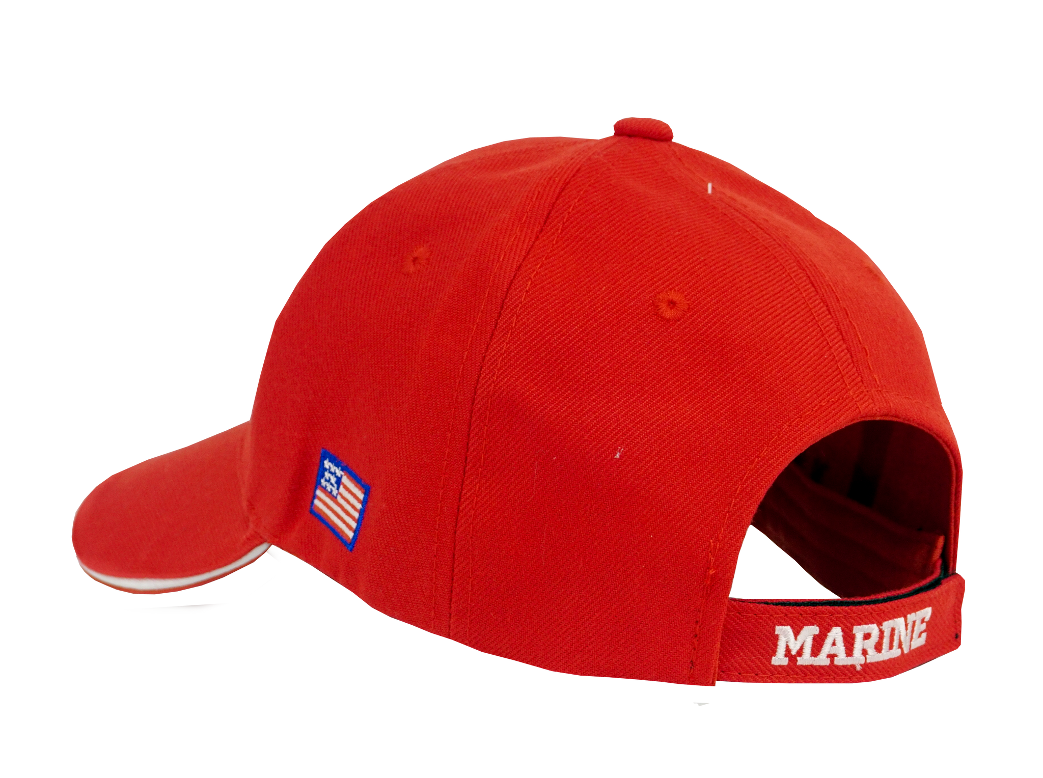- Unisex US Marine Corps adjustable embroidered hat in red.
