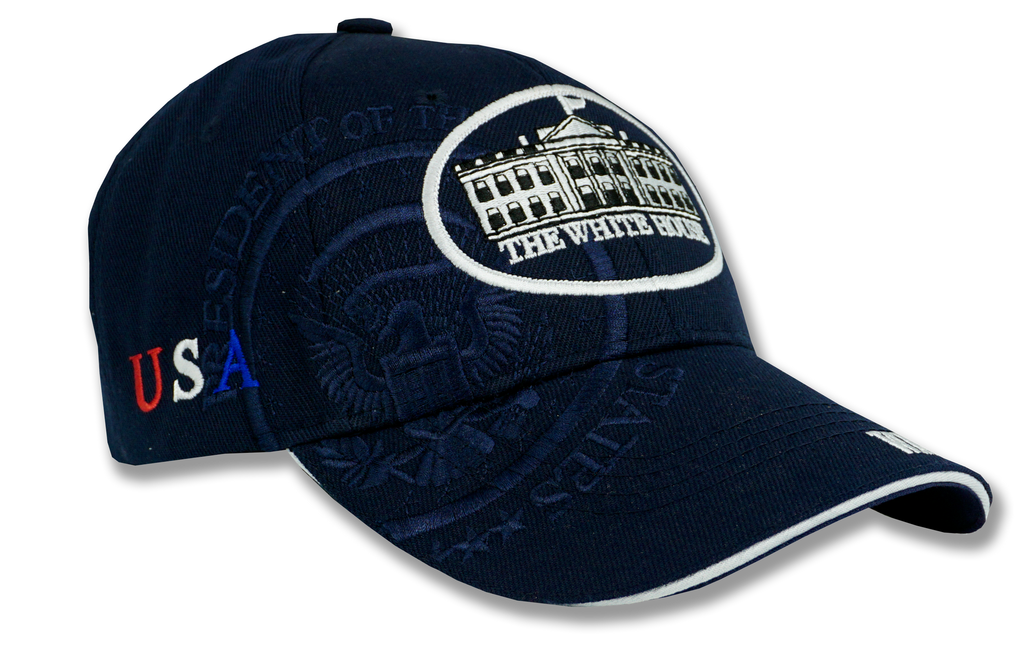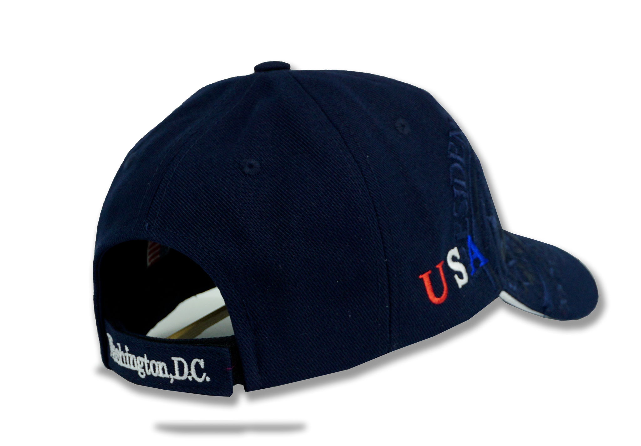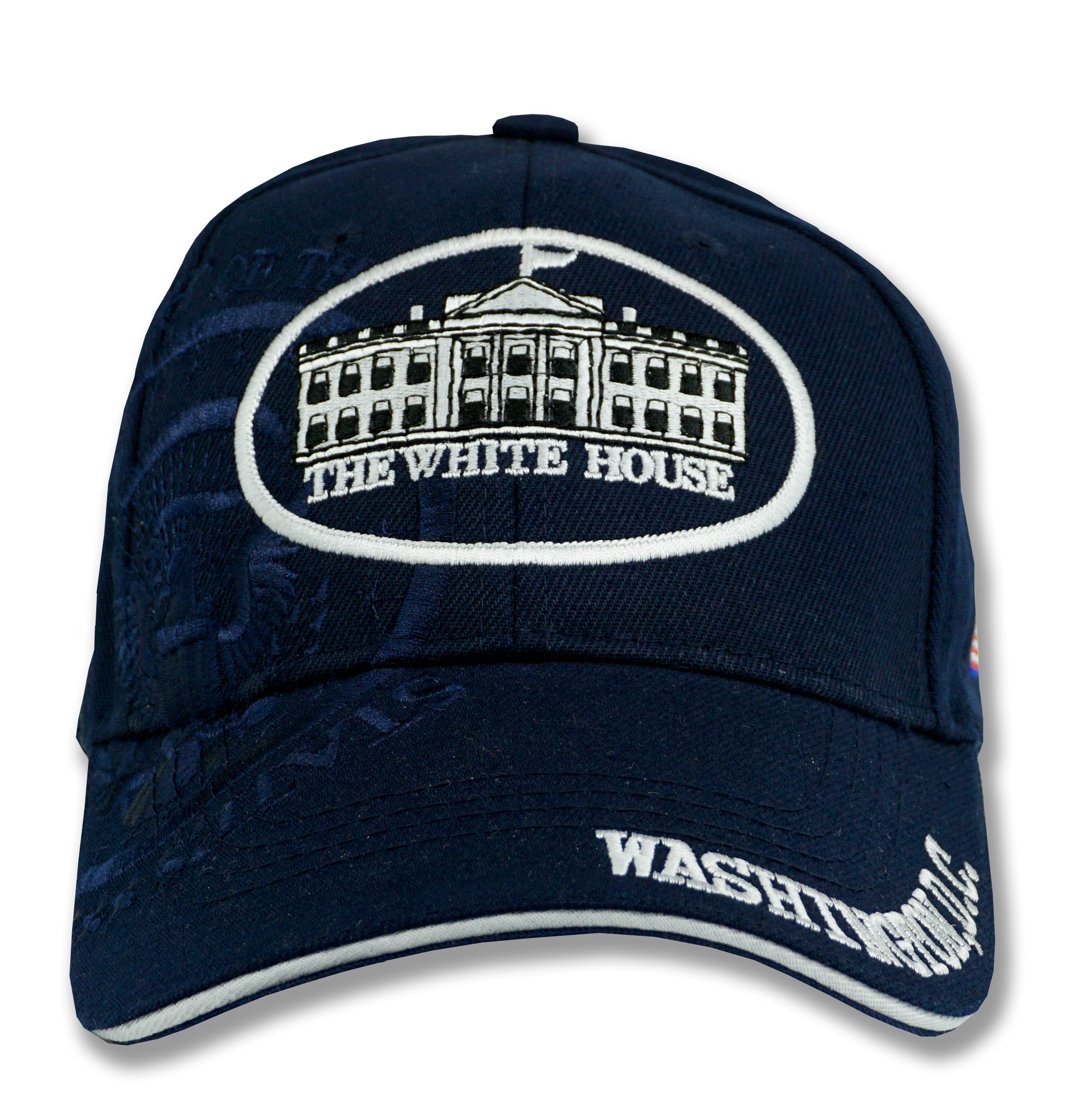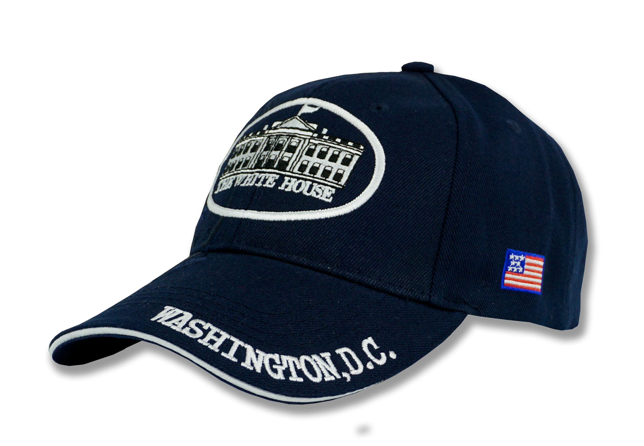 - Unisex The White House and Washington, D.C. adjustable embroidered hat in navy blue.