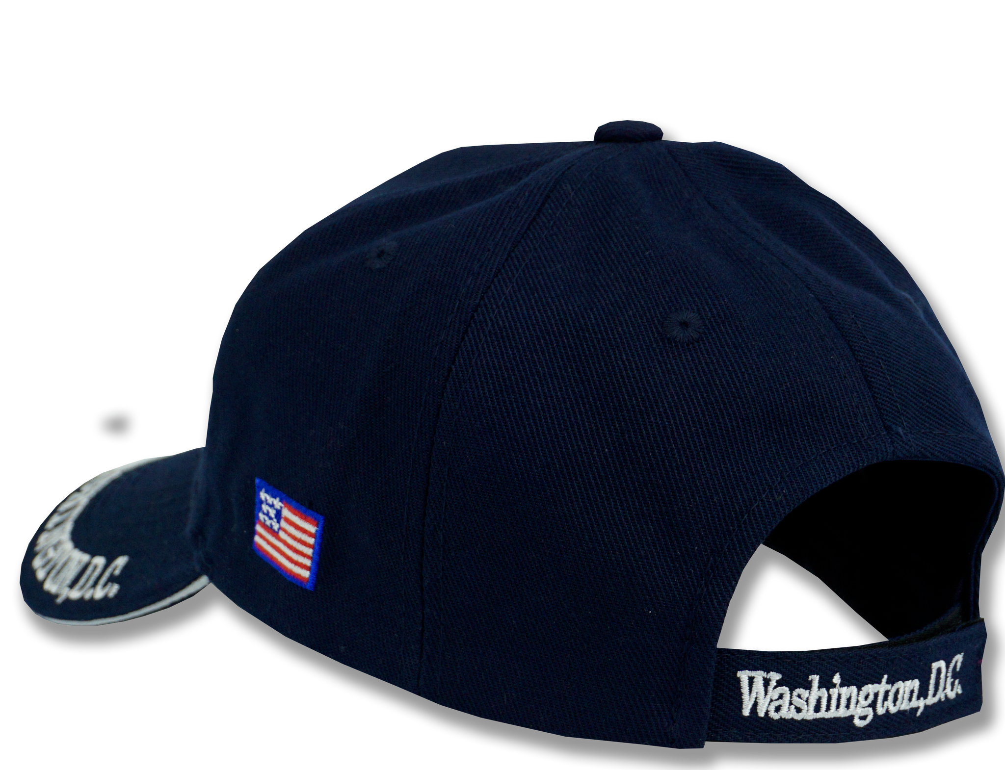 - Washington, D.C. embroidered on Velcro closure in the back as well as on bill.