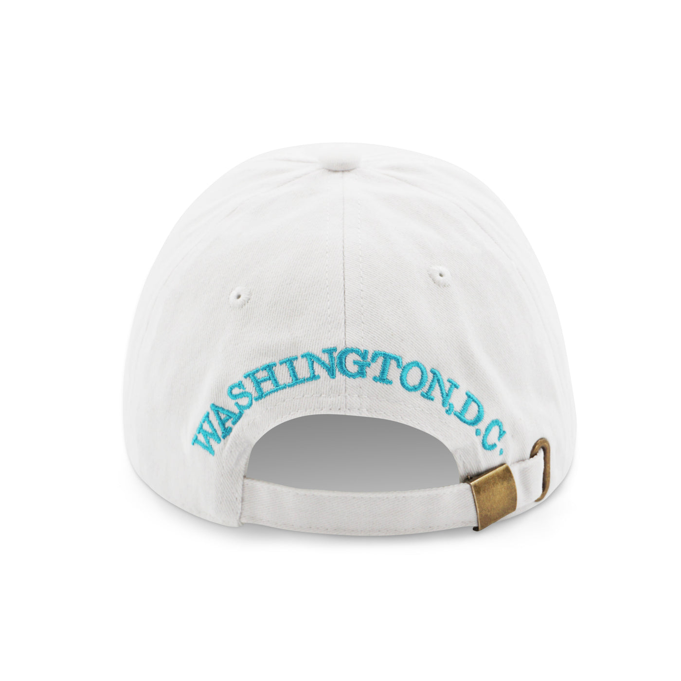 Celebrate the capital with our Washington DC Design Baseball Cap in fresh white and vibrant turquoise. This stylish cap is perfect for showcasing your city pride in a chic way.
