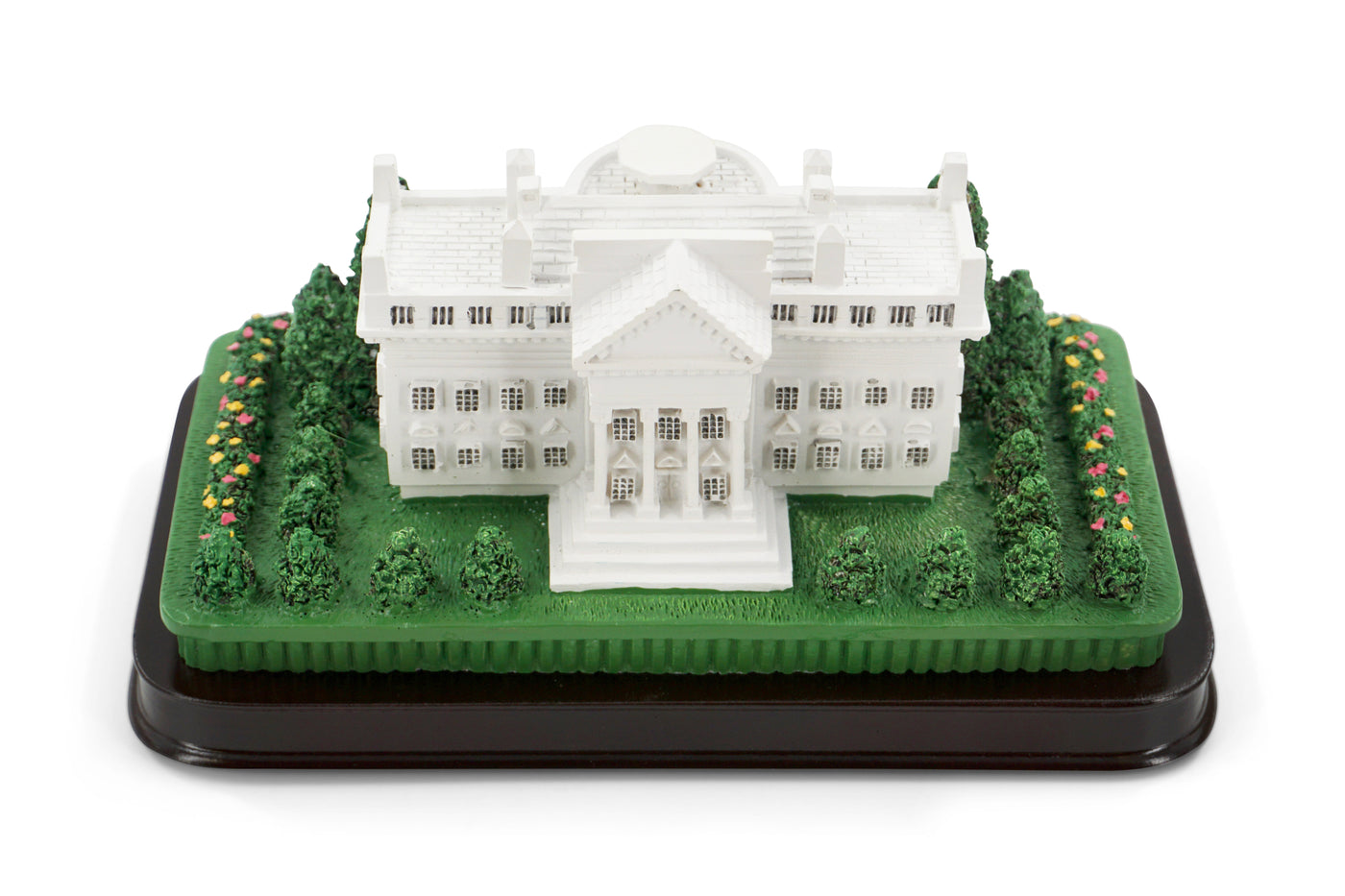 Celebrate American heritage with this elegant White House Miniature Souvenir, a meticulously crafted replica of the most iconic residence in the United States. This detailed 3D model captures the architectural beauty of the White House, complete with lush green landscaping, finely sculpted trees, and the stately columns of the South Portico.