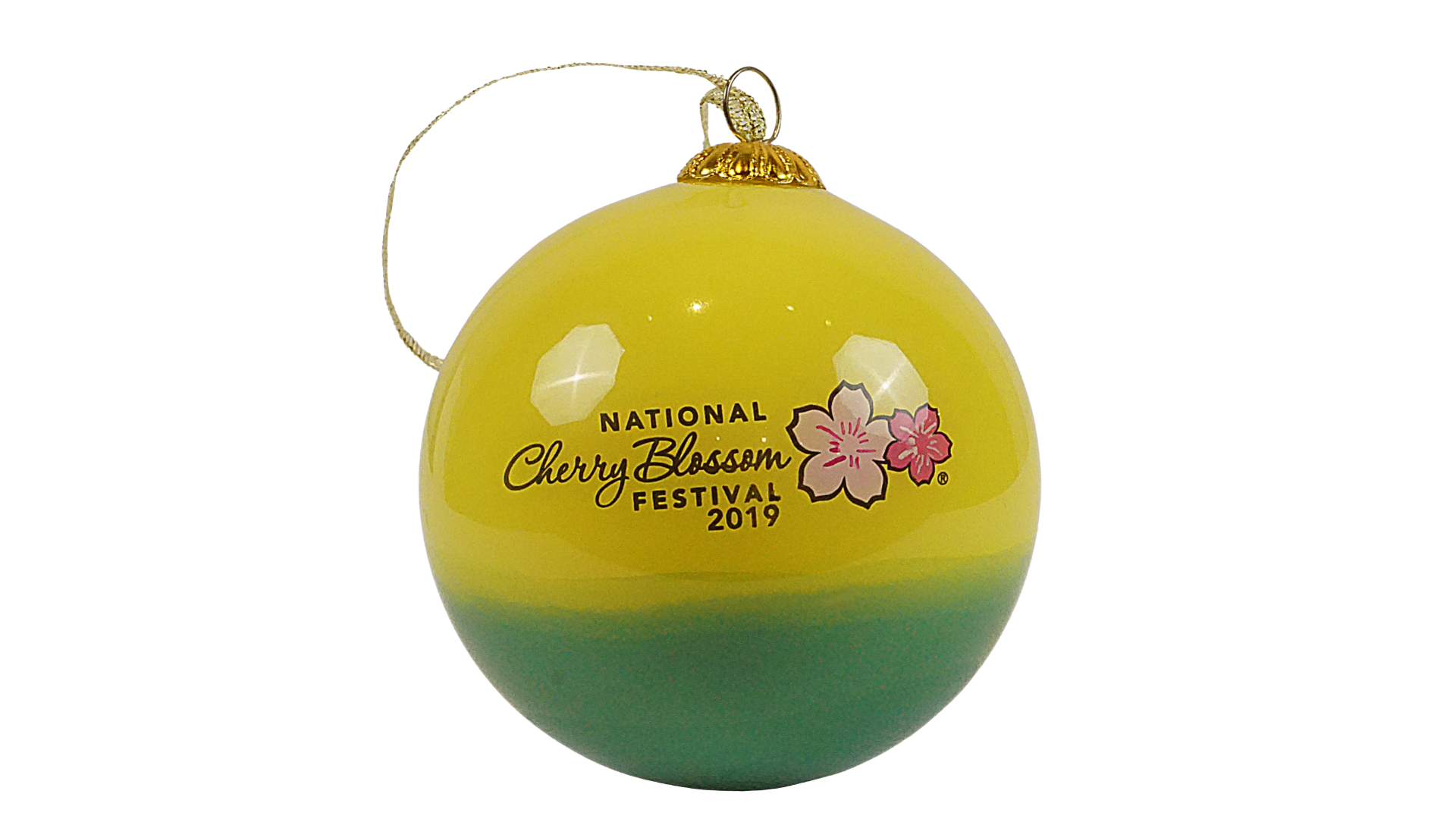 Celebrate the beauty of spring and the spirit of Washington D.C. with this ombre green ornament, gracefully fading from light to darker green. Featuring the words “National Cherry Blossom Festival 2019” alongside a delicate pink cherry blossom, it’s a charming keepsake perfect for holiday decor or commemorating this iconic festival.