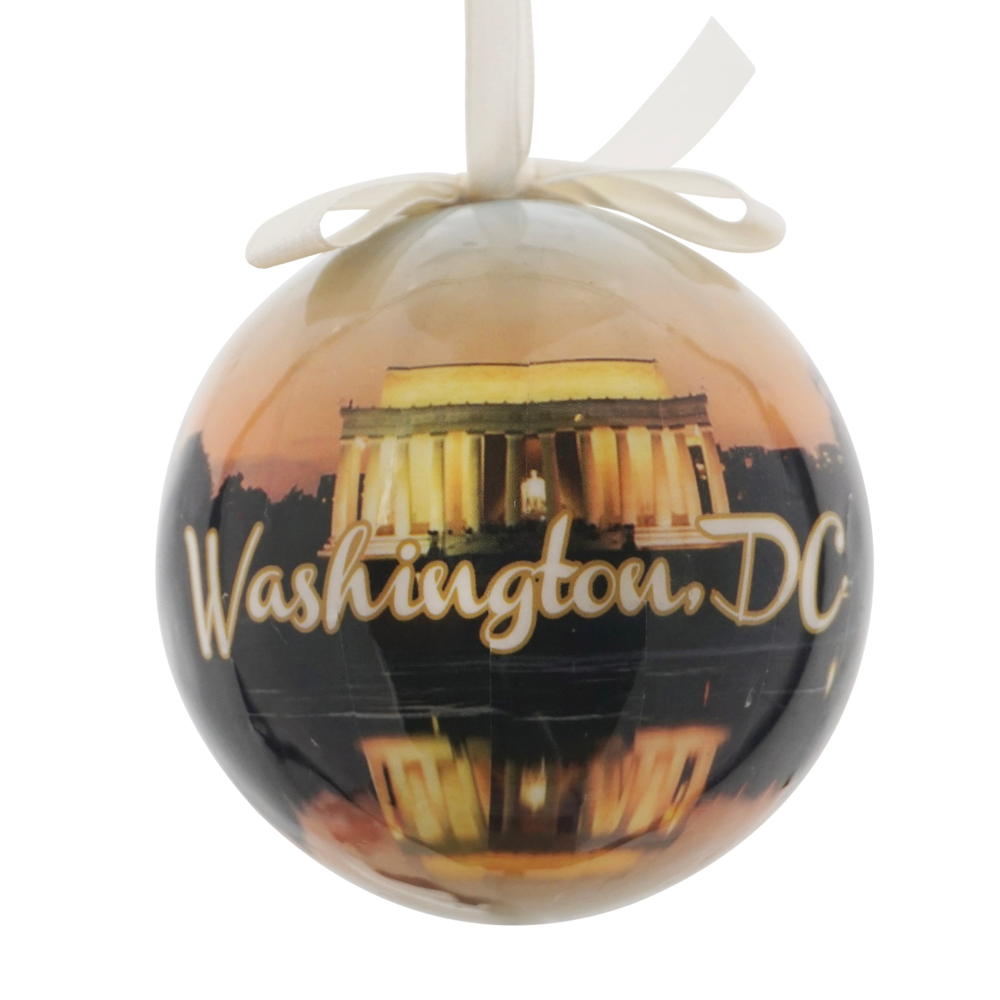 Celebrate American history with our beautiful plastic ornament showcasing the iconic Lincoln Memorial, elegantly adorned with the words "Washington, DC." Perfect for hanging on your tree, it adds a special touch to your holiday decor and makes a thoughtful gift for history enthusiasts.