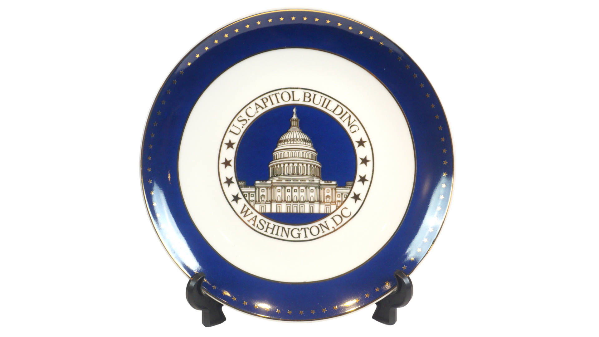 Blue Washington D.C. US Capitol Porcelain Plate w/Stand 8"