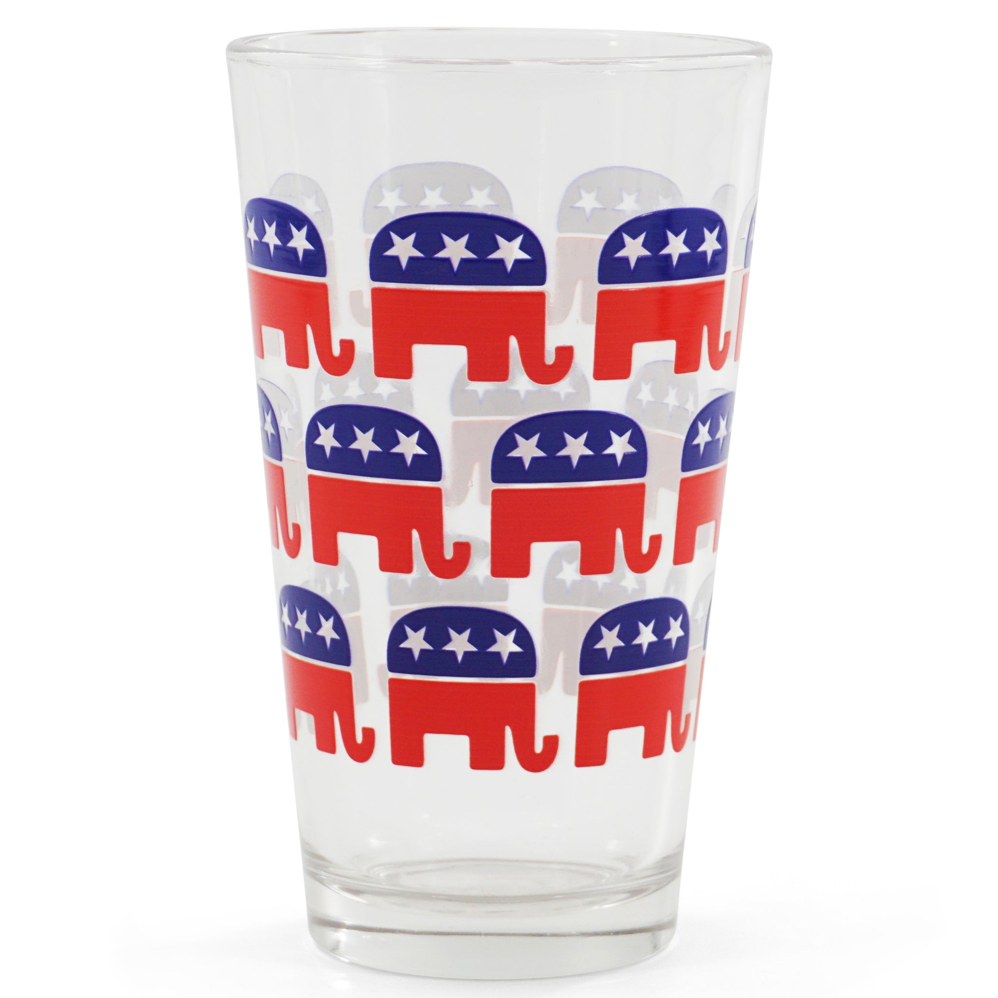 Elevate your drinking experience with this pint glass cup featuring an all-over Republican design.