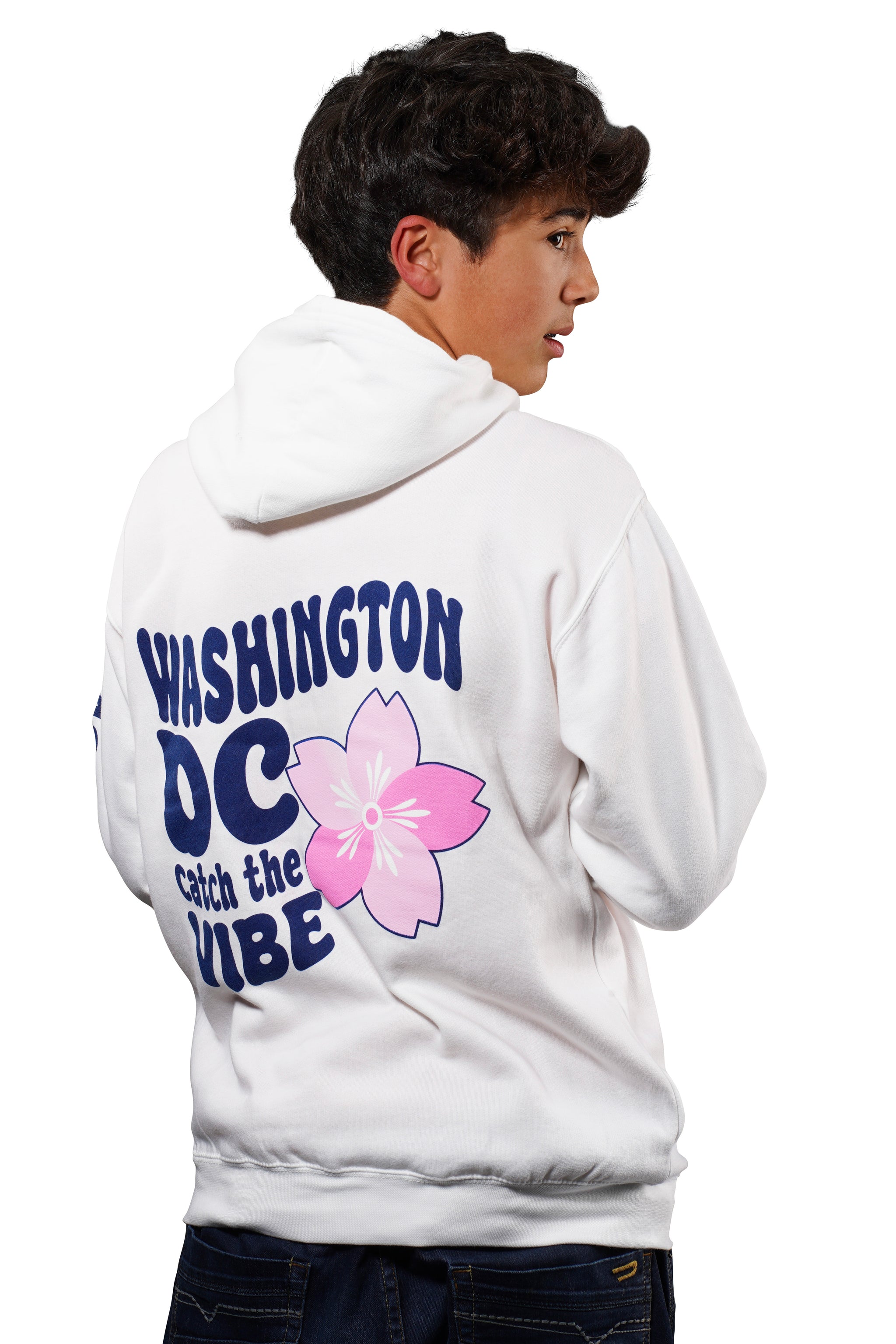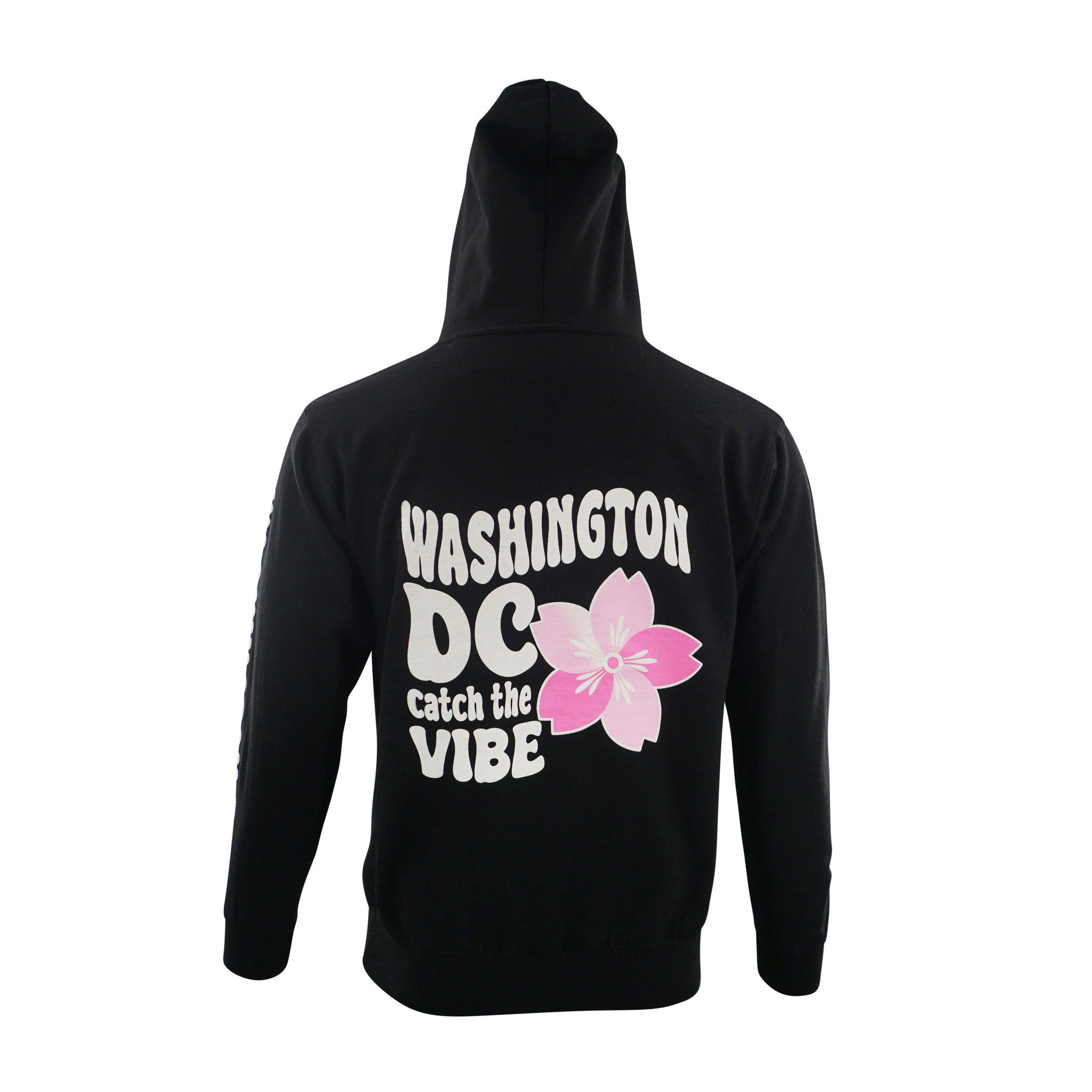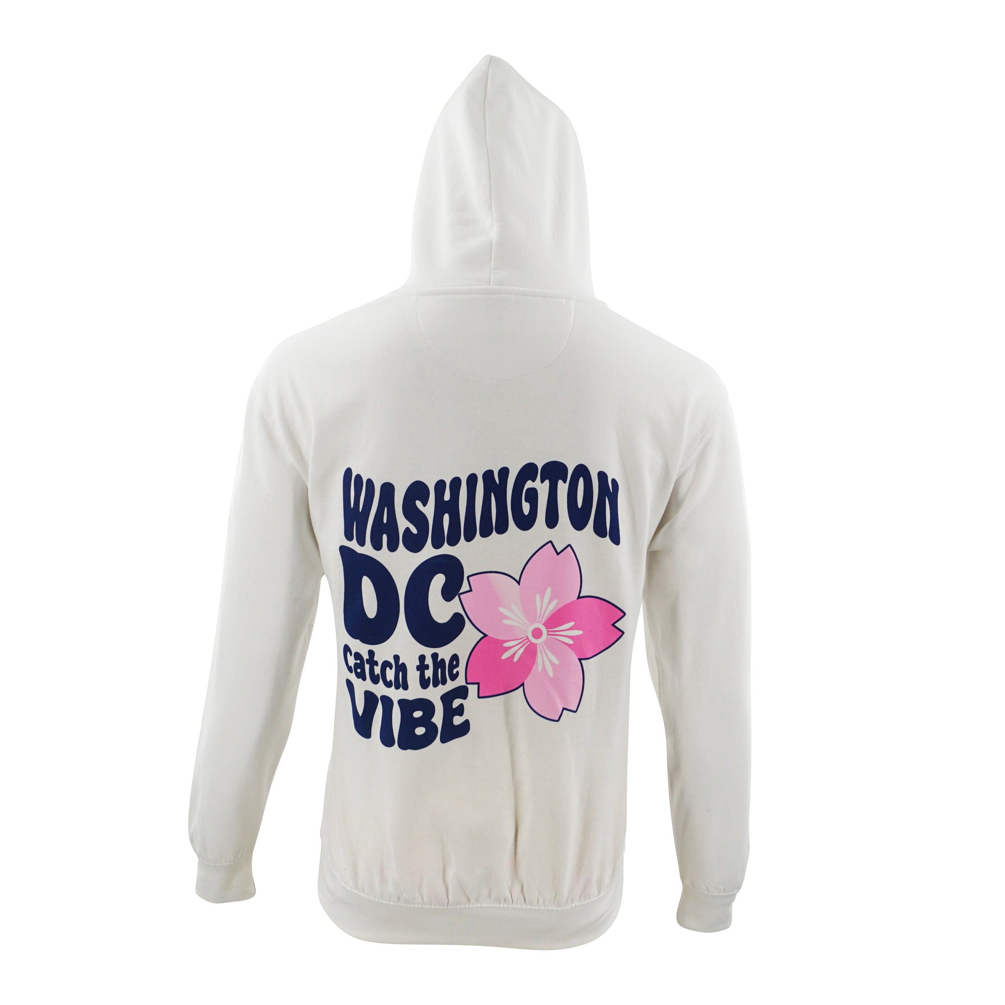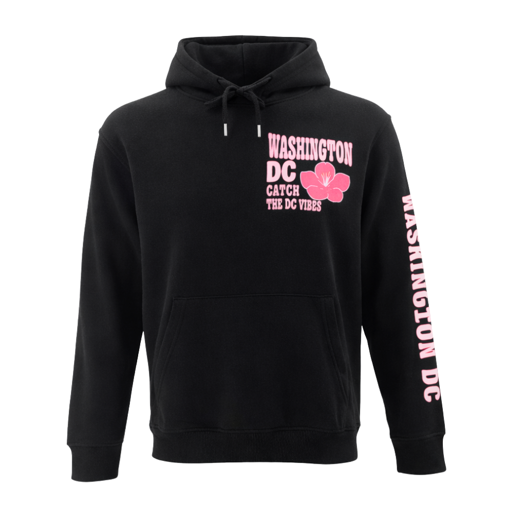 Express your unique style with our vibrant and cozy Vibes hoodie! Designed to embody the spirit of Washington, DC, featuring the playful text "Washington DC Catch the Vibe" on the front, accompanied by a charming pink cherry blossom flower, this hoodie is perfect for those who embrace both style and comfort. Available in four different colors.