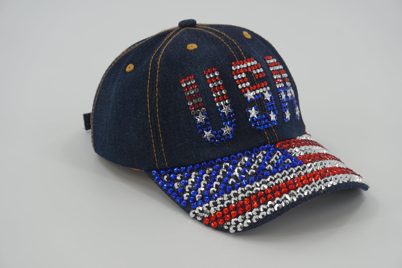 {"id":8012768870515,"title":"Denim Rhinestone USA Baseball Cap","handle":"denim-rhinestone-usa-baseball-cap","description":"\u003cp dir=\"ltr\"\u003e\u003cspan\u003eShow your American pride in standout style with this dazzling denim USA baseball cap. This cap is all about bold sparkle and patriotic flair — perfect for festivals, summer events, or just turning heads wherever you go.\u003c\/span\u003e\u003c\/p\u003e\n\u003cp dir=\"ltr\"\u003e\u003cspan\u003eKey Features:\u003c\/span\u003e\u003c\/p\u003e\n\u003cul\u003e\n\u003cli dir=\"ltr\" aria-level=\"1\"\u003e\n\u003cp dir=\"ltr\" role=\"presentation\"\u003e\u003cspan\u003eOversized \u003c\/span\u003e\u003cspan\u003e“USA”\u003c\/span\u003e\u003cspan\u003e lettering in bold \u003c\/span\u003e\u003cspan\u003ered, white, and blue rhinestones\u003c\/span\u003e\u003cspan\u003e across the front\u003c\/span\u003e\u003c\/p\u003e\n\u003c\/li\u003e\n\u003cli dir=\"ltr\" aria-level=\"1\"\u003e\n\u003cp dir=\"ltr\" role=\"presentation\"\u003e\u003cspan\u003eWhite and blue rhinestones\u003c\/span\u003e\u003cspan\u003e fully cover the visor\u003c\/span\u003e\u003c\/p\u003e\n\u003c\/li\u003e\n\u003cli dir=\"ltr\" aria-level=\"1\"\u003e\n\u003cp dir=\"ltr\" role=\"presentation\"\u003e\u003cspan\u003eClassic baseball cap structure with brown adjustable back for the perfect fit\u003c\/span\u003e\u003c\/p\u003e\n\u003c\/li\u003e\n\u003cli dir=\"ltr\" aria-level=\"1\"\u003e\n\u003cp dir=\"ltr\" role=\"presentation\"\u003e\u003cspan\u003eLightweight and durable\u003c\/span\u003e\u003c\/p\u003e\n\u003c\/li\u003e\n\u003cli dir=\"ltr\" aria-level=\"1\"\u003e\n\u003cp dir=\"ltr\" role=\"presentation\"\u003e\u003cspan\u003eMaterial: 100% cotton\u003c\/span\u003e\u003c\/p\u003e\n\u003c\/li\u003e\n\u003cli dir=\"ltr\" aria-level=\"1\"\u003e\n\u003cp dir=\"ltr\" role=\"presentation\"\u003e\u003cspan\u003eSize: One Size\u003c\/span\u003e\u003c\/p\u003e\n\u003c\/li\u003e\n\u003cli dir=\"ltr\" aria-level=\"1\"\u003e\n\u003cp dir=\"ltr\" role=\"presentation\"\u003e\u003cspan\u003e\u003c\/span\u003eWeight: 2.9 oz\u003cb id=\"docs-internal-guid-d4806fb4-7fff-494f-c850-1d06f649a59b\"\u003e\u003cspan\u003e\u003cbr\u003e\u003c\/span\u003e\u003c\/b\u003e\u003c\/p\u003e\n\u003c\/li\u003e\n\u003c\/ul\u003e","published_at":"2025-11-01T14:39:07-04:00","created_at":"2025-06-08T18:19:42-04:00","vendor":"Abe's Gifts Washington DC","type":"Baseball Caps","tags":["Baseball Caps"],"price":1699,"price_min":1699,"price_max":1699,"available":true,"price_varies":false,"compare_at_price":null,"compare_at_price_min":0,"compare_at_price_max":0,"compare_at_price_varies":false,"variants":[{"id":43121358602355,"title":"Default Title","option1":"Default Title","option2":null,"option3":null,"sku":"","requires_shipping":true,"taxable":true,"featured_image":null,"available":true,"name":"Denim Rhinestone USA Baseball Cap","public_title":null,"options":["Default Title"],"price":1699,"weight":82,"compare_at_price":null,"inventory_management":"shopify","barcode":"842078016084","requires_selling_plan":false,"selling_plan_allocations":[]}],"images":["\/\/abesgiftsdc.com\/cdn\/shop\/files\/DSC09334.jpg?v=1762022349","\/\/abesgiftsdc.com\/cdn\/shop\/files\/DSC09332.jpg?v=1762022349","\/\/abesgiftsdc.com\/cdn\/shop\/files\/DSC09335.jpg?v=1762022349","\/\/abesgiftsdc.com\/cdn\/shop\/files\/DSC09333.jpg?v=1762022349"],"featured_image":"\/\/abesgiftsdc.com\/cdn\/shop\/files\/DSC09334.jpg?v=1762022349","options":["Title"],"media":[{"alt":null,"id":30387831668851,"position":1,"preview_image":{"aspect_ratio":1.5,"height":4000,"width":6000,"src":"\/\/abesgiftsdc.com\/cdn\/shop\/files\/DSC09334.jpg?v=1762022349"},"aspect_ratio":1.5,"height":4000,"media_type":"image","src":"\/\/abesgiftsdc.com\/cdn\/shop\/files\/DSC09334.jpg?v=1762022349","width":6000},{"alt":null,"id":30387831537779,"position":2,"preview_image":{"aspect_ratio":1.5,"height":4000,"width":6000,"src":"\/\/abesgiftsdc.com\/cdn\/shop\/files\/DSC09332.jpg?v=1762022349"},"aspect_ratio":1.5,"height":4000,"media_type":"image","src":"\/\/abesgiftsdc.com\/cdn\/shop\/files\/DSC09332.jpg?v=1762022349","width":6000},{"alt":null,"id":30387831734387,"position":3,"preview_image":{"aspect_ratio":1.5,"height":4000,"width":6000,"src":"\/\/abesgiftsdc.com\/cdn\/shop\/files\/DSC09335.jpg?v=1762022349"},"aspect_ratio":1.5,"height":4000,"media_type":"image","src":"\/\/abesgiftsdc.com\/cdn\/shop\/files\/DSC09335.jpg?v=1762022349","width":6000},{"alt":null,"id":30387831636083,"position":4,"preview_image":{"aspect_ratio":1.5,"height":4000,"width":6000,"src":"\/\/abesgiftsdc.com\/cdn\/shop\/files\/DSC09333.jpg?v=1762022349"},"aspect_ratio":1.5,"height":4000,"media_type":"image","src":"\/\/abesgiftsdc.com\/cdn\/shop\/files\/DSC09333.jpg?v=1762022349","width":6000}],"requires_selling_plan":false,"selling_plan_groups":[],"content":"\u003cp dir=\"ltr\"\u003e\u003cspan\u003eShow your American pride in standout style with this dazzling denim USA baseball cap. This cap is all about bold sparkle and patriotic flair — perfect for festivals, summer events, or just turning heads wherever you go.\u003c\/span\u003e\u003c\/p\u003e\n\u003cp dir=\"ltr\"\u003e\u003cspan\u003eKey Features:\u003c\/span\u003e\u003c\/p\u003e\n\u003cul\u003e\n\u003cli dir=\"ltr\" aria-level=\"1\"\u003e\n\u003cp dir=\"ltr\" role=\"presentation\"\u003e\u003cspan\u003eOversized \u003c\/span\u003e\u003cspan\u003e“USA”\u003c\/span\u003e\u003cspan\u003e lettering in bold \u003c\/span\u003e\u003cspan\u003ered, white, and blue rhinestones\u003c\/span\u003e\u003cspan\u003e across the front\u003c\/span\u003e\u003c\/p\u003e\n\u003c\/li\u003e\n\u003cli dir=\"ltr\" aria-level=\"1\"\u003e\n\u003cp dir=\"ltr\" role=\"presentation\"\u003e\u003cspan\u003eWhite and blue rhinestones\u003c\/span\u003e\u003cspan\u003e fully cover the visor\u003c\/span\u003e\u003c\/p\u003e\n\u003c\/li\u003e\n\u003cli dir=\"ltr\" aria-level=\"1\"\u003e\n\u003cp dir=\"ltr\" role=\"presentation\"\u003e\u003cspan\u003eClassic baseball cap struct