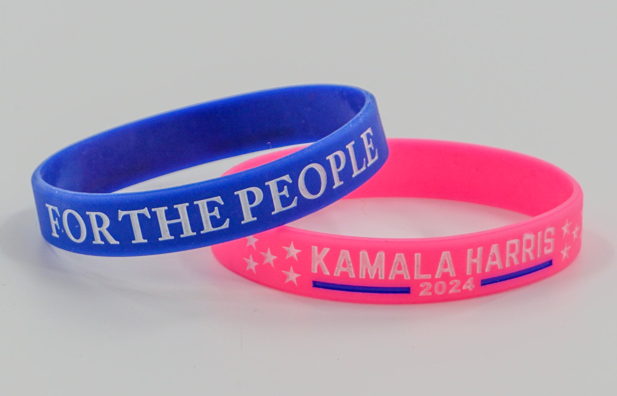 Show your support and make a statement with our vibrant Kamala Harris rubber bracelet. This stylish accessory is perfect for rallies, events, or everyday wear, allowing you to proudly represent your beliefs with a touch of flair.